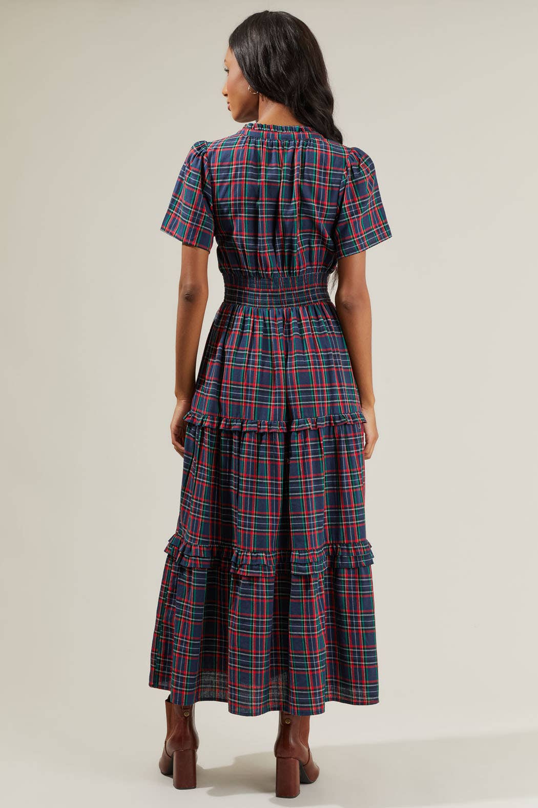 Miley Plaid Palmer Poplin Tiered Maxi Dress