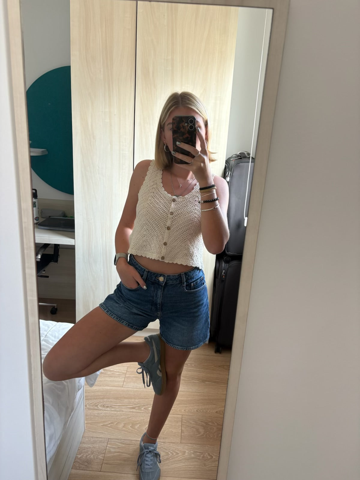 Sleeveless Crochet Top with Button Detail 100% Cotton One size fits all