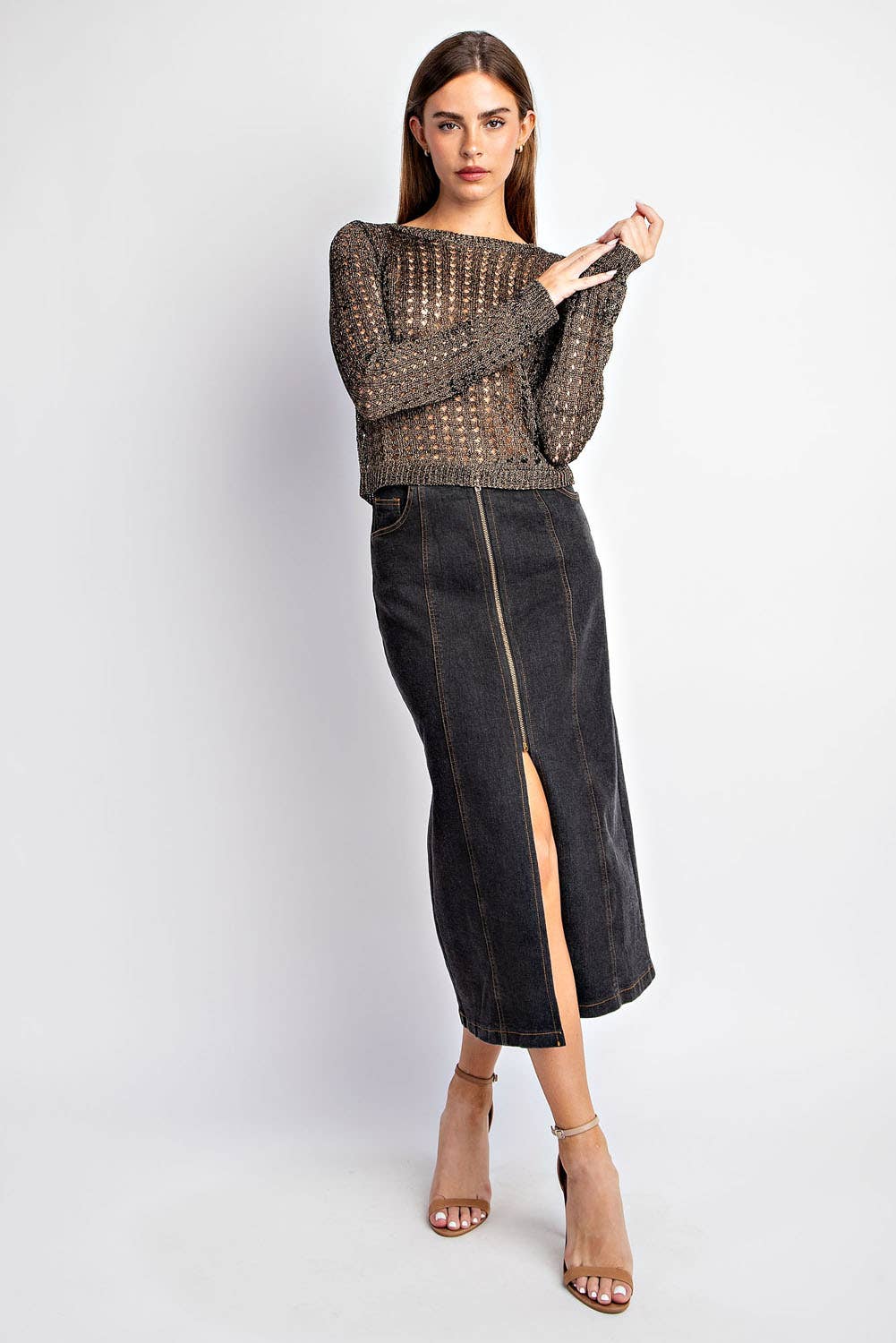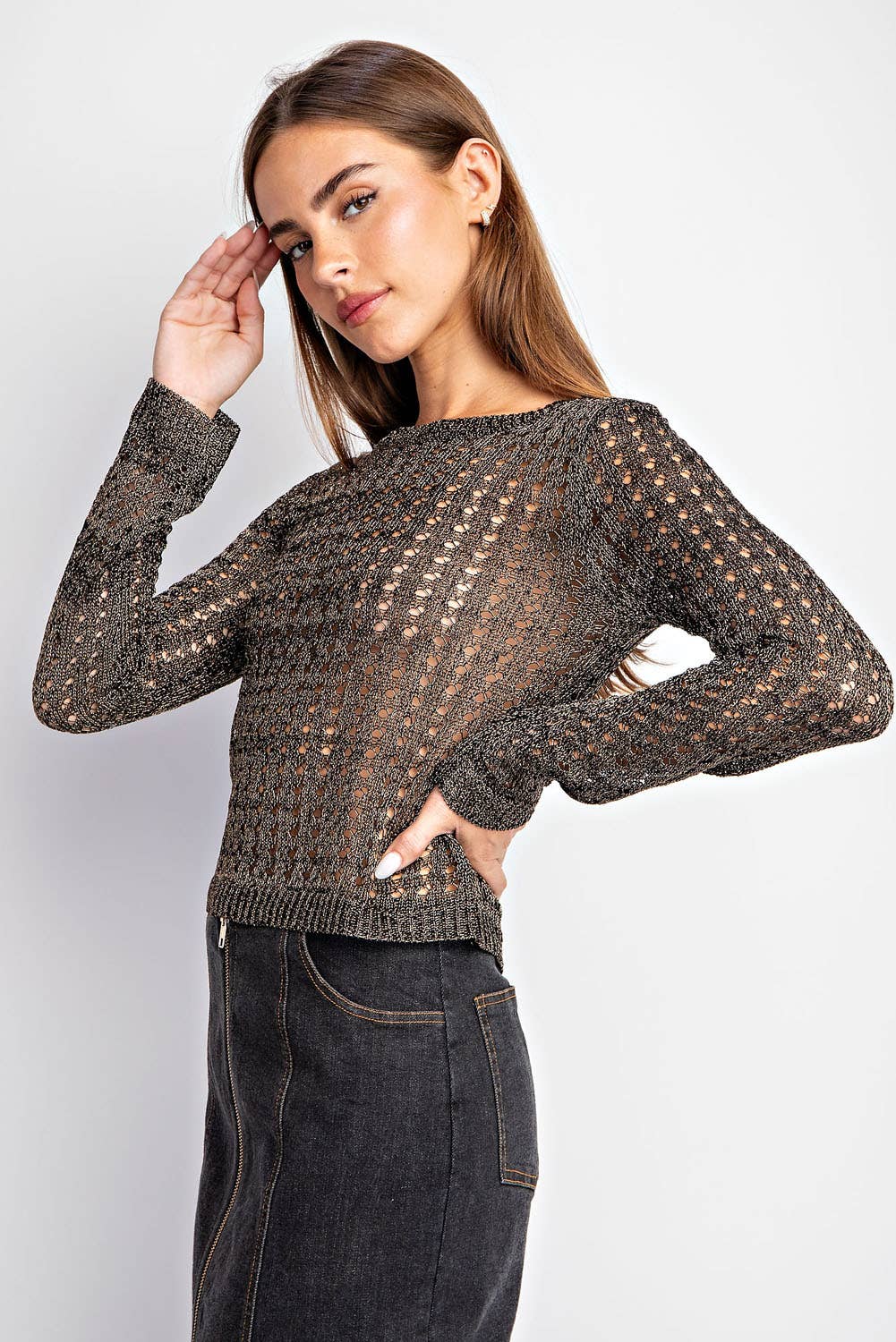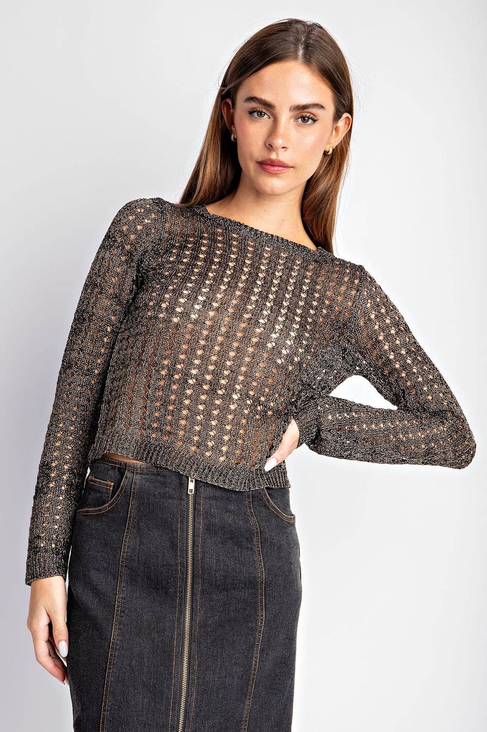 Metallic Yarn Long Sleeve Top *Fabric Content: 100% Polyester